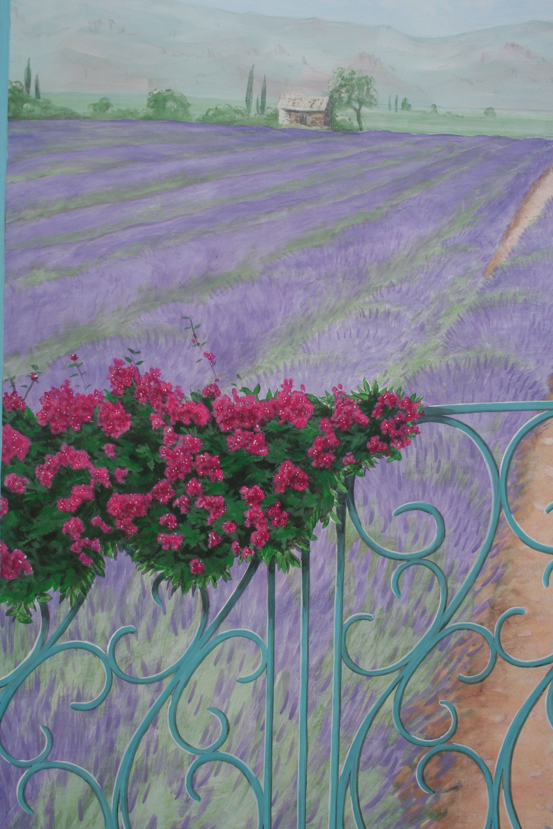 Swimming pools are perfect for letting your imagination run away from you to create a really captivating mural. This customer’s swimming pool was quite long and narrow. One of the concepts behind painting this endless landscape was to make the area feel less enclosed; with the presence of this mural, you no longer see the wall and you’re transported to this incredible place. This mural took around six weeks to complete, after the initial work. This one needed scaffolding in order to reach the entire span of wall that needed painting.